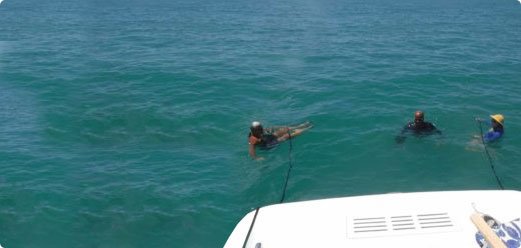 We begin by reviewing, then jumping into deep water in a pool. All the nonphysical components of overcoming fear and becoming fully in control are covered. Step by step your confidence increases. When this class follows Deep Water Play, students have spontaneously begun to tread water in this course. On Day 2, we spend the day on the boat. Jump into a peaceful cove and rest. Start on a tether if you wish. Play with noodles and lifejackets. Then, out to the Gulf to jump into the blue, weather permitting. Learn by feeling safe and having fun. Lunch is on the boat, compliments of MSSA.