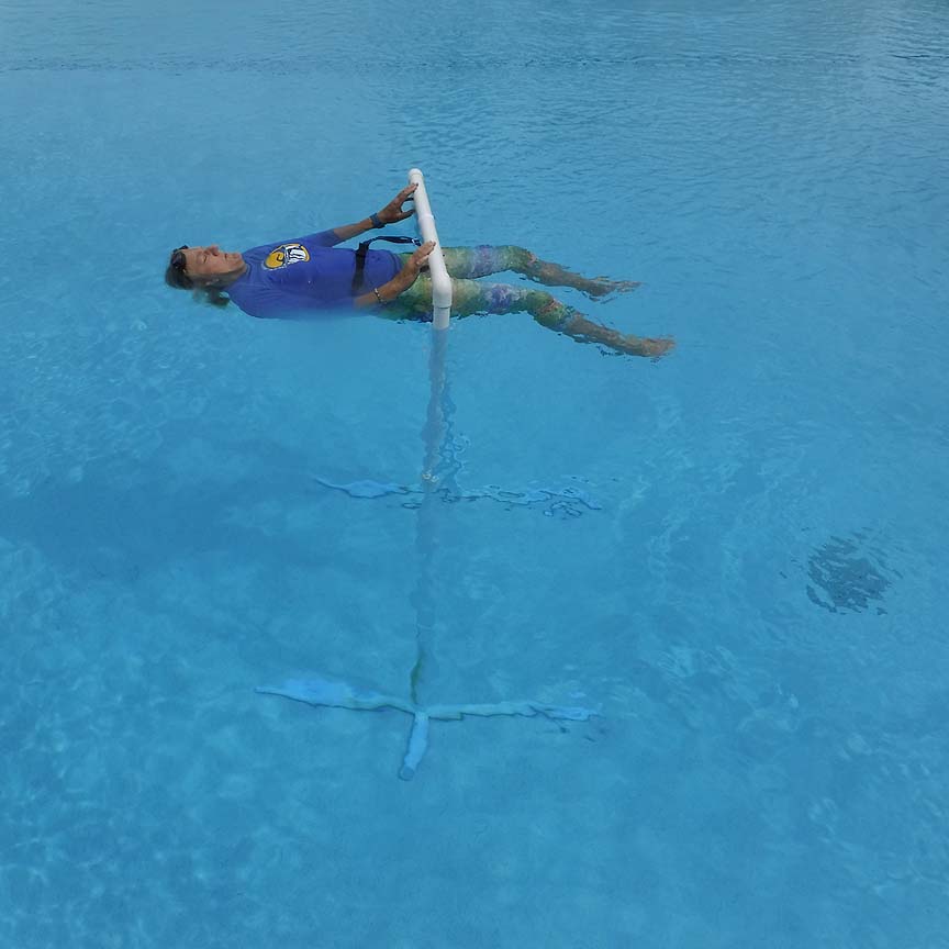 All the components and instructions needed to assemble the float bar, learn to float, be still, move, and be happy in shallow and deep water.